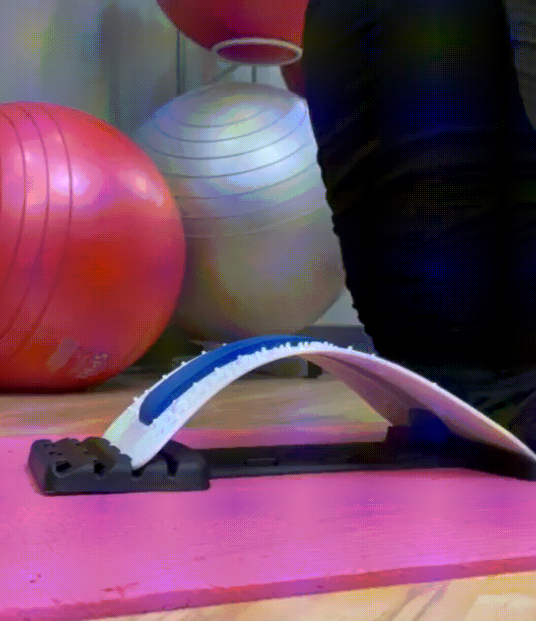 Simply place the board on a flat surface, adjust the level of the board that suits you best, slowly lie back on the board and feel the release. For more advanced users, stretch your arms out over your head.